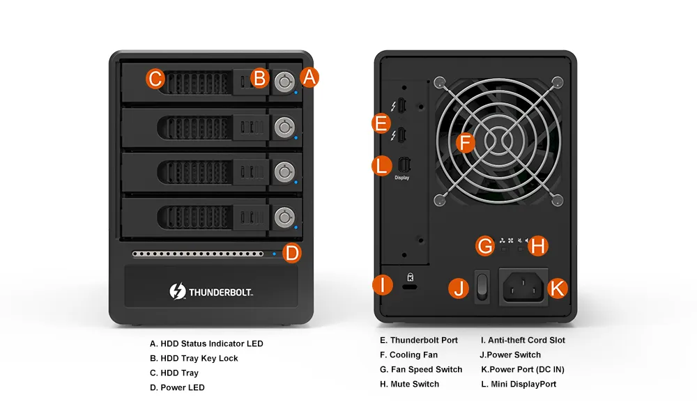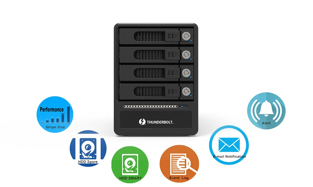 | Package Accessories | * GR4670-TB3 x 1 ( with removable drive tray enclosed x 4 ) * Thunderbolt Cable x1 * Power Cord x1 * Accessory Kit * Quick Installation Guide x1 |