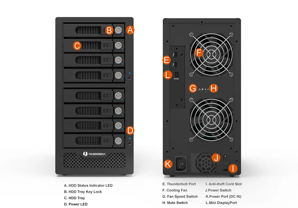 | Package Accessories | * GR8670-TB3 x 1 ( with removable drive tray enclosed x 8 ) * Thunderbolt Cable x1 * Power Cord x1 * Accessory Kit * Quick Installation Guide x1 |
