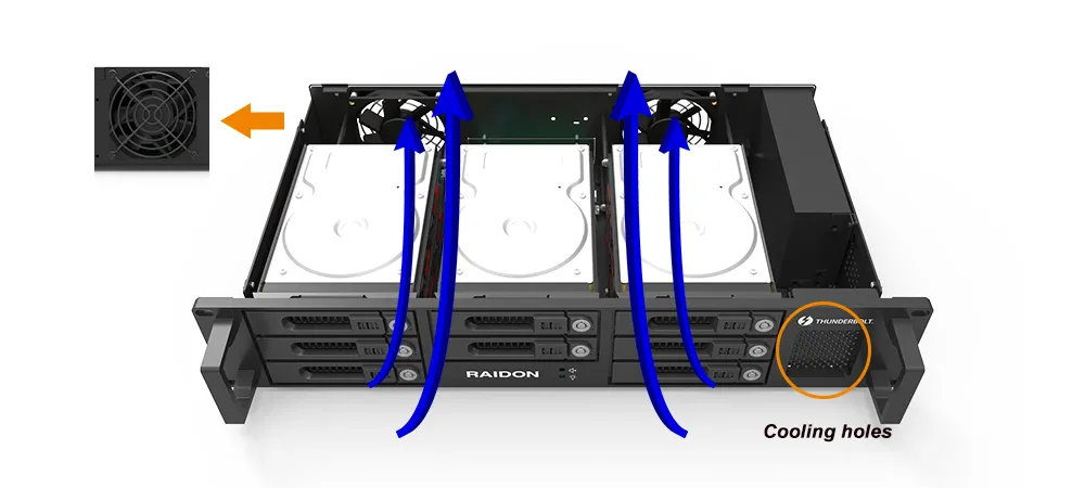 Even though it's a standard 2U rackmount chassis size, GR8680-TB3 still has a fashion ID to match your Mac or PC while standing beside it. It's well protected under its 4mm aluminum chassis which also helps dissipating heat too!
