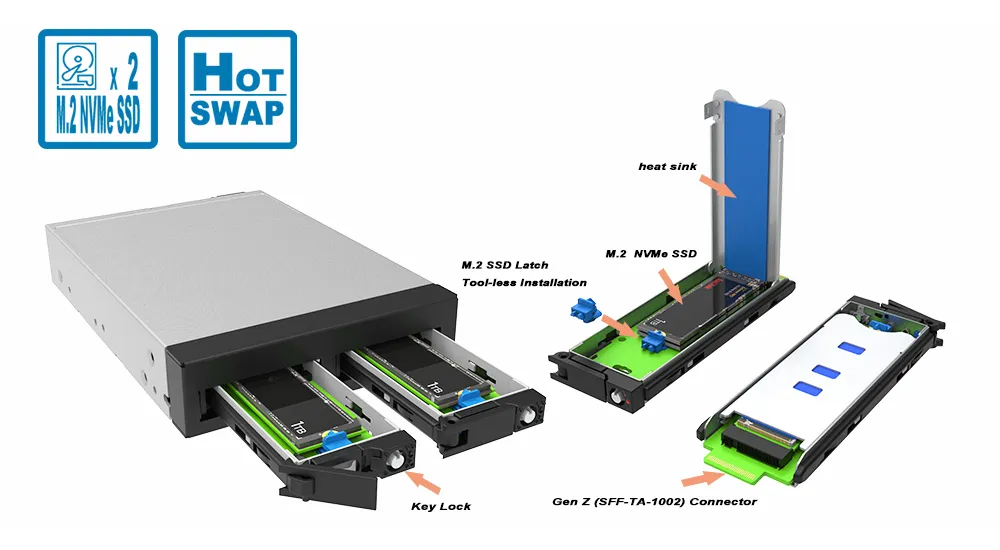 Hot-Swap Functionality: Hot-swap capable hardware; hot-swap behavior depends on host platform PCIe/NVMe hot-plug support.