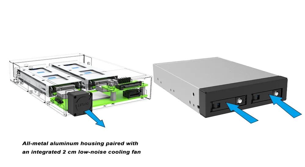 NVMe SSDs are notorious for "thermal throttling" (slowing down when they get too hot). The combination of a precision-machined aluminum heat sink and an active 2 cm cooling fan ensures your drives stay cool even during 24/7 heavy workloads.