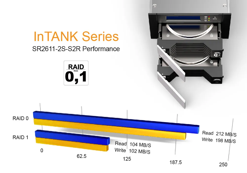 The SR2611 model is a fault-tolerant hard disk array machine which is easy to install and hot-swappable while the power is on. It is suitable for applications such as professional personal workstations, important PC servers, etc. as real-time backup storage equipment.