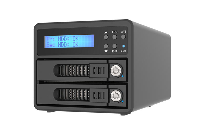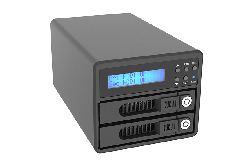 4. An LCD display providing immediate updates on RAID mode status and drive conditions.