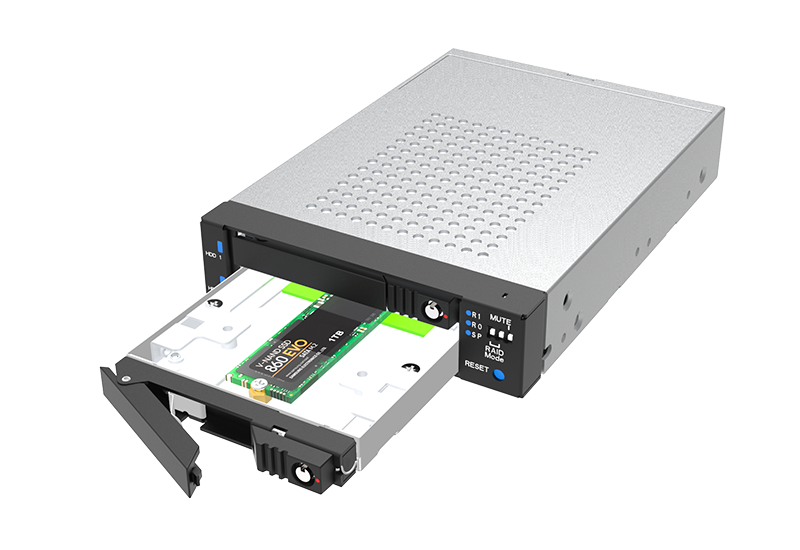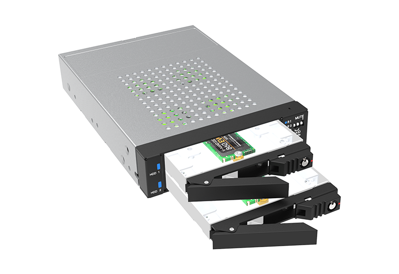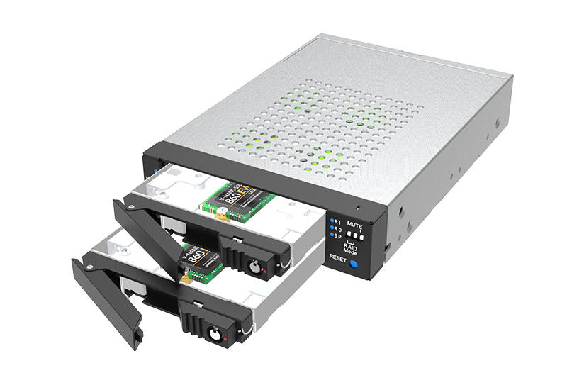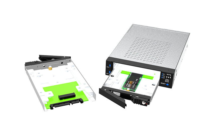 RAIDON's easy-to-use disk tray module comes with a key lock and secure the tray with screws. User can buy several tray modules and secured the tray modules first, once there is one M.2 SATA SSD in iR8774 is failure, just replace the M.2 SATA SSD directly. It can greatly reduce the wait time for system maintenance.