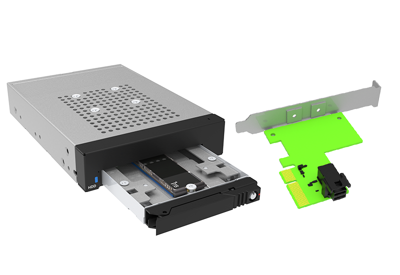 The HiU1776 set comes with a RAIDON PC05-EZ-I HBA adapter, enabling you to extend the reach of M.2 NVMe SSDs from PCIe to the iU1776-U6P3 NVMe enclosure tailored to fit a standard 3.5-inch hard drive bay.