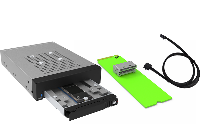 | Compatible Drive | 1 x M.2 NVMe SSD (2242/2260/2280) 1 x U.2 SSD (height 9.5mm) Tray with lock |