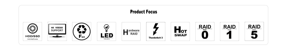 | Storage Mode | RAID 0, 1, 5, 10 and JBOD |