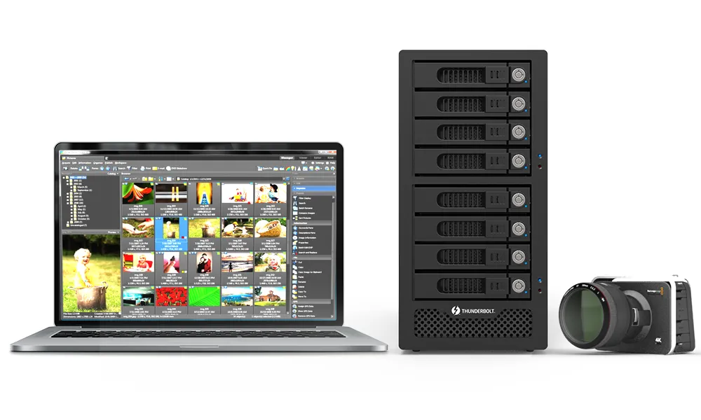 Since GR8670-TB3 provides two Thunderbolt 3 ports, just use your MacBook Pro, you could set up your own full function photo studio right away. You could then save tons of RAW images. And of course, you could edit and process the images quickly once you set up your GR8670-TB3 with RAID 0 feature.