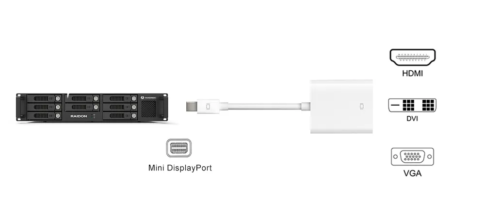 All our Thunderbolt 3 products also support a Mini DisplayPort which gives you a very easy way to connect to your display device. This Mini DisplayPort is fully complaint to all the existing DVI, HDMI, and VGA display devices thru an adapter.