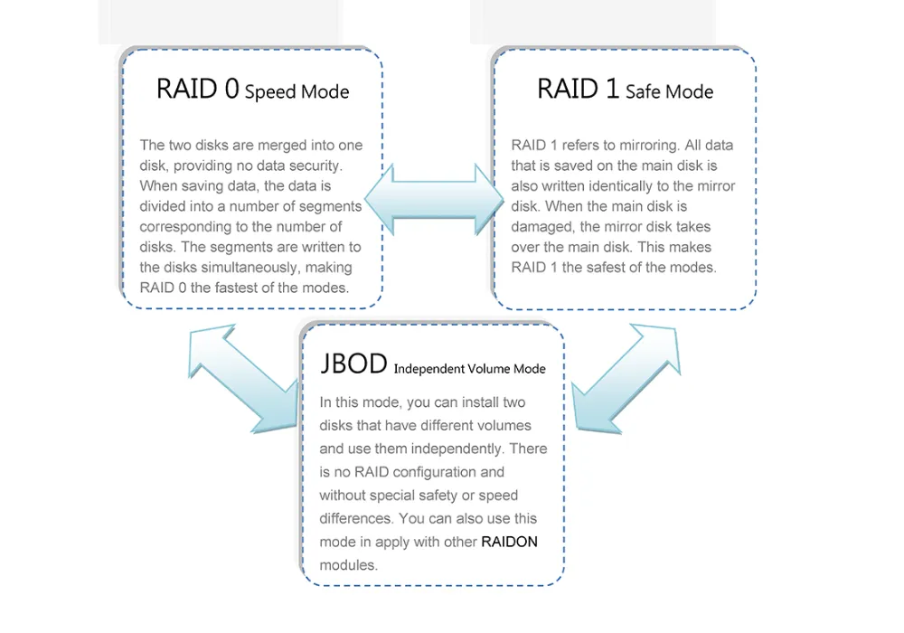 | RAID Level | RAID 1 / RAID 0 / JBOD |