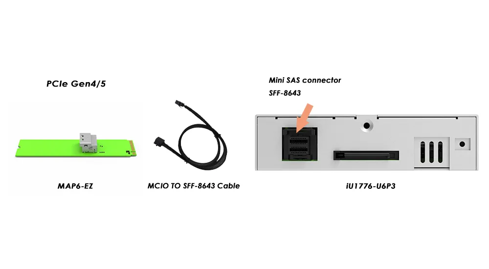 • All-in-One Package: Includes the MAP6-EZ adapter, iU1776-U6P3 M.2 NVMe enclosure, and a 50 cm MCIO cable—everything you need for a complete setup.