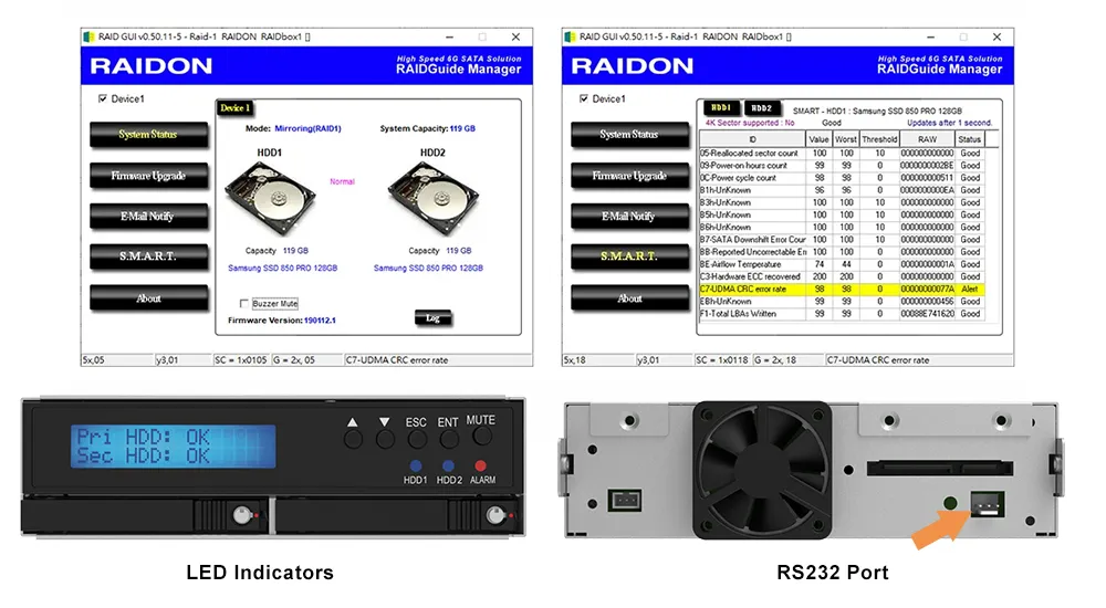 ● STATUSGUARD GUI: Dedicated Windows software for real-time drive S.M.A.R.T. monitoring.