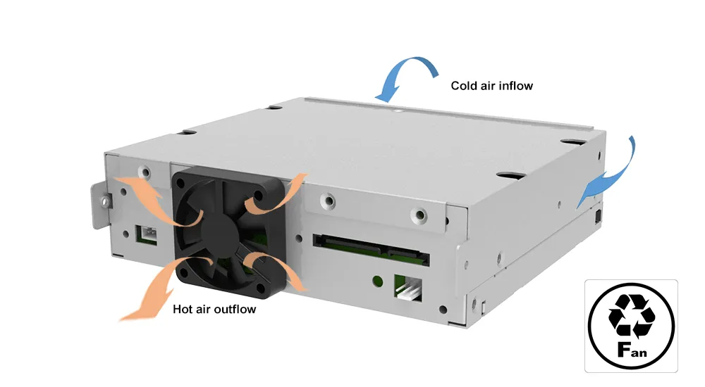 Rugged metal housing with a built-in 40mm silent cooling fan ensures optimal operating temperatures.