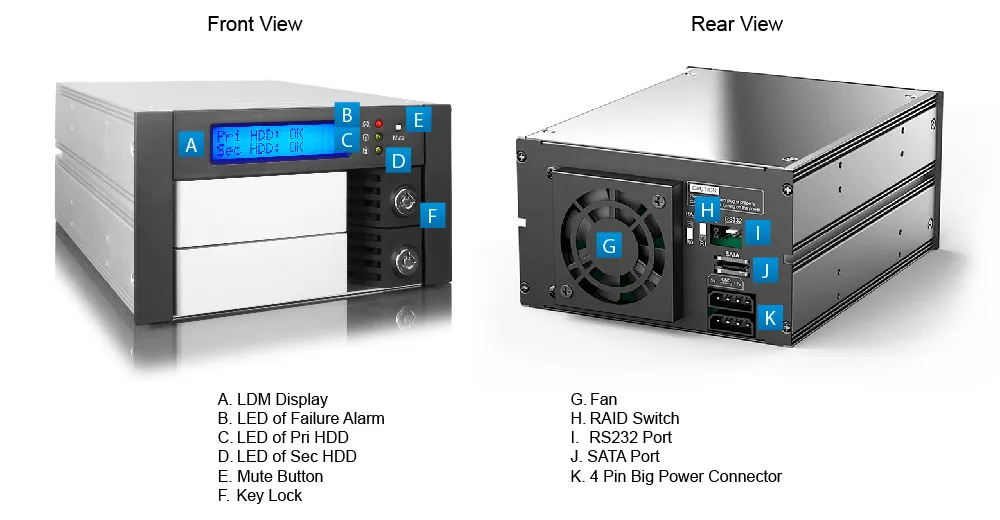 2.If the hard disk is damaged in the RAID 1 module, you just need to buy a hard disk with the same specifications to replace it, and you can continue to back up the data without waiting for maintenance.